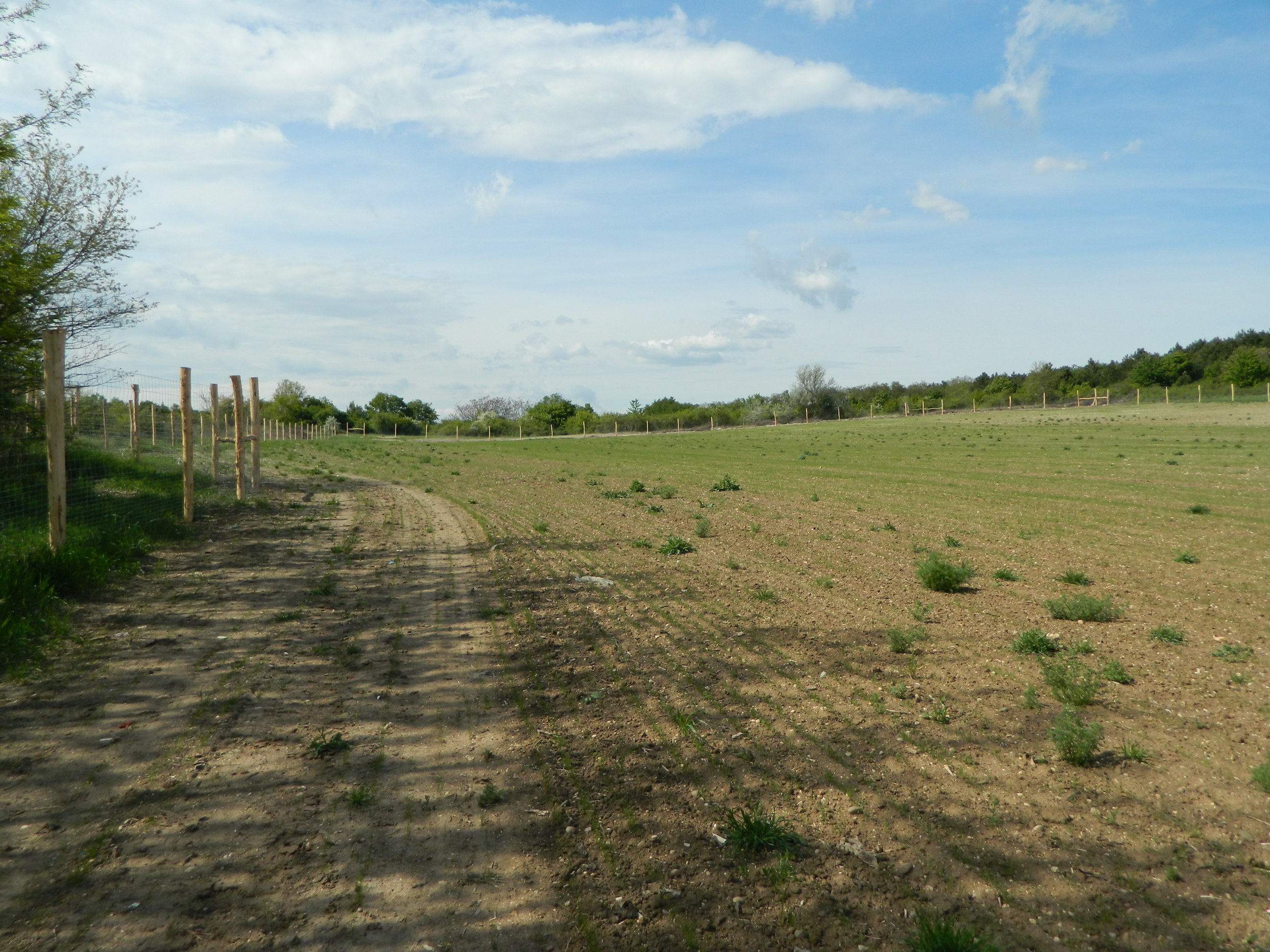 May 9, 2017: We have a fence and the young grass is growing!